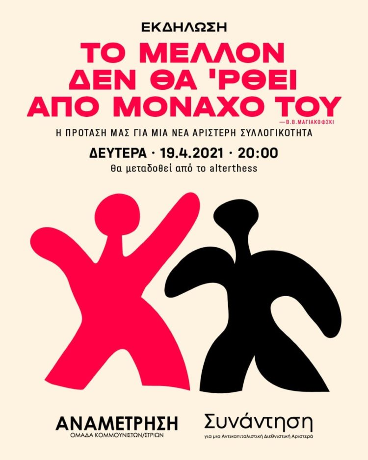 Η σημερινή μας πρόταση δεν είναι άλλη μία διακήρυξη καλών προθέσεων. Αποτελεί ώριμη, κοινή απόφαση δυο συλλογικοτήτων καθώς και αρκετών ανένταχτων αγωνιστών/τριών, με διαφορετική ιδεολογική και πολιτική καταγωγή που – για πρώτη φορά μετά από πολλά χρόνια – αποφασίζουν την κοινή τους πορεία. Εμπεριέχει ένα ορισμένο χρονοδιάγραμμα, με κατεύθυνση τη συγκρότηση ενός κοινού πολιτικού φορέα εντός του 2021.